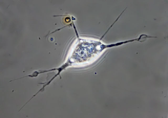 Dimensions: Body 35-40 µm, or up to 80 µm or more; pseudopodia 400 µm long or longer.
