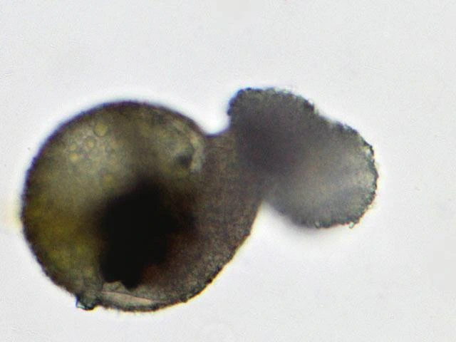 00.42 h.. The cytoplasm moves back into the mother shell, the vacuoles disappear.