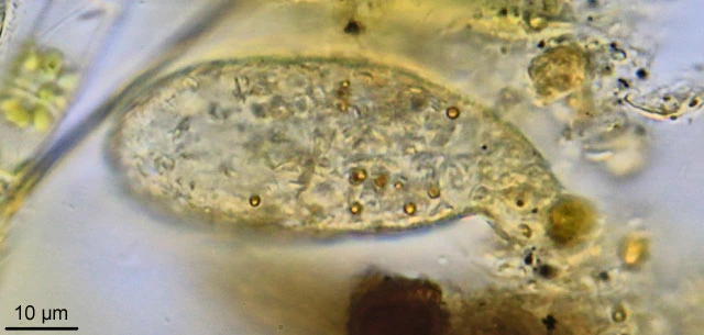 Dimensions: Penard 50-60 µm (mean); my measurements 64-71 µm.