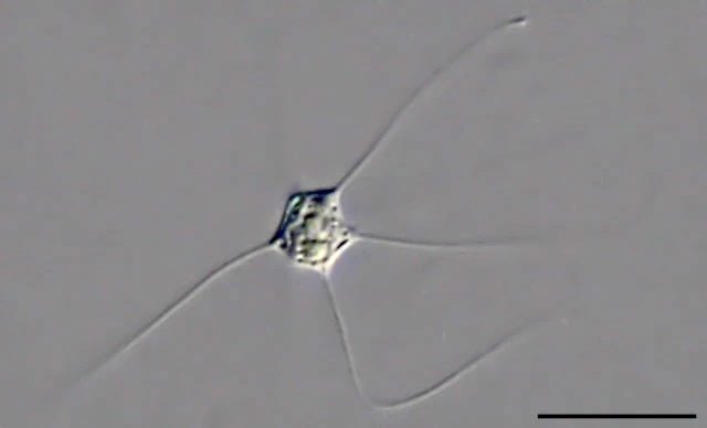 In the spring of 2014 I found two small specimens of Artodiscus saltans in a wet mount kept for some days in a wet chamber. They came from a sample from the Laegieskamp. Remarkable was the small size, between 5 and 10 µm. The shape of the body is constantly changing. Both specimens were moving very fast.