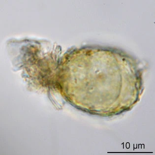 • Microgromia-haeckeliana-oo-7Granofilose – Testate amoeboids with granular filose pseudopodia. Granules are evenly distributed and move slowly or not at all. Shell and pseudopodia appressed to the substratum.
