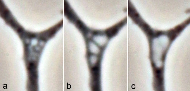 Development of a contractile vacuole: a small vacuoles  b vacuoles join together c one large vacuole