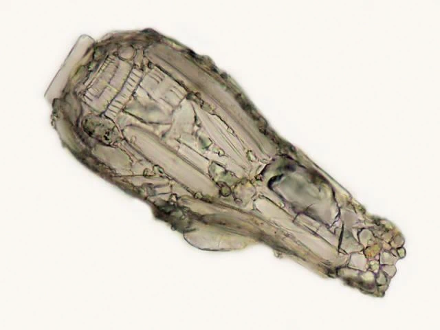 Remarks: The outline of the shell is often obscured by the diversity of diatom frustules incorporated into its structure. In some cases, the entire shell may appear as an amalgamation of diatoms. The siliceous materials used range from diatom frustules nearly equal in length to the body of the shell, to smaller frustules about 10 µm long, and spherical siliceous cysts from chrysomonad flagellates.