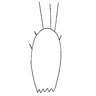 | 28 | Apertural scales are oval with a small triangular medial tooth and 4-5 lateral | 29 |