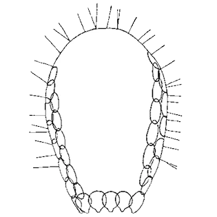 | 16’ | Spines directed backwards | 17 |