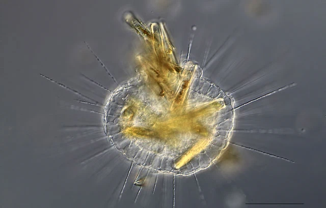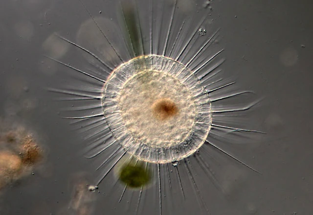 Diagnosis: Spherical naked heliozoa with numerous small nuclei. Cytoplasm often with a discrete peripheral layer of large vacuoles, and the nuclei occur at the inner boundary of this layer. Axonemes terminate on the nuclei or an electron-dense material near the nuclei.