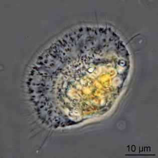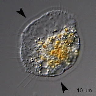 I found this Hyalodiscus species in a sample from a small freshwater dune lake along the Dutch coast. It resembled Hyalodiscus rubicundus, but most cells had a double contour. This was not due to diffraction, it was visible in both Phase Contrast and DIC and also with different objectives.