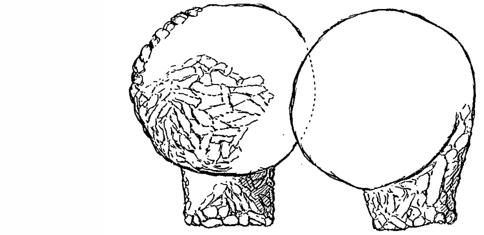 Diagnosis: Main part of the test spherical, not compressed, with a large but short cylindrical neck. Shell embedded with elongated xenosomes.