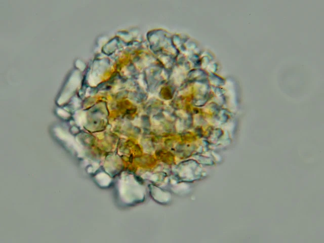 Diagnosis: amoeba surrounded by a layer of small irregular mineral grains; test flexible; with very fine smooth filopodia, without the granules so typical for true heliozoans; plasmabody usually with a reddish color. Nucleus vesicular with central nucleolus.
