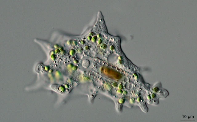 Diagnosis: Locomotive form elongated, with the length always greater than the breadth; mammilliform or conical subpseudopodia, often overtaken by the advancing hyaloplasm; nucleus spherical, with a central nucleolus; no cytoplasmic crystals observed; endoplasm with zoochlorellae.