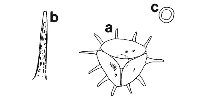 Remarks: This species looks very much like M. aculeata. Its status is thus questionable. Differences from M. aculeata are: Its thorns are longer, relatively slender, internally hollow and structured. The upper test part is covered with xenosomes.