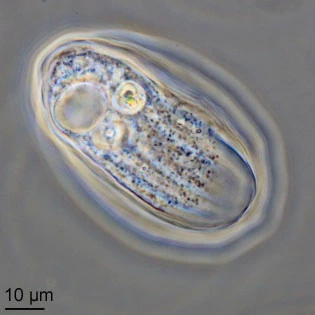 Remarks: Thecamoeba species cannot be identified based on their light-microscopic characters, such as shape and size of the locomotive form, the presence and typical position of ridges and folds and the structure and the size of the nucleus There are species, which can hardly be distinguished by light-microscopic morphology, or cannot be distinguished, e.g., T. aesculea is almost indistinguishable from T. sphaeronucleolus. Identification of Thecamoeba species based solely on light microscopic data should be taken with great care (Mesentsev, Kamyshatskaya and A. Smirnov, 2020).