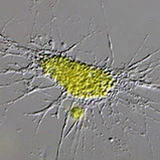 Amoebae flattened, branched with anastomosing pseudopodia. Pseudopodia with bi-directional streaming.