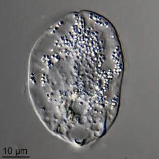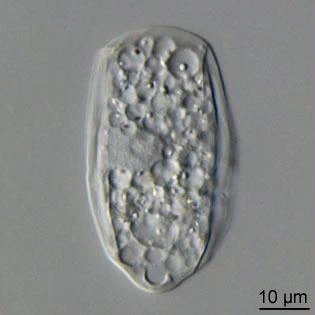 Dimensions: 60 µm long, 40 µm broad (Hertwig & Lesser). My measurements: 53-103 µm long.