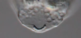 Diagnosis: body oval, flattened, enclosed by a flexible but rather stiff membrane; cell shaped like a shield of a knight, hence the name scutiformis (=shield shaped). Mid region usually thickened, edges much thinner, like wings around the central body mass. These wings vary in width or are absent. Pseudostome flexible, varying from a long slit to a circular aperture. Just above the pseudostome is a crescent shaped structure, which might have been mistaken for the aperture by some workers. Nucleus relatively large, granular with some larger pieces. Cell divided in three zones: a pseudostomal zone with several contractile vacuoles which may fuse, a zone with food vacuoles and a large zone with the nucleus and a large number of granules. This latter zone can occupy more than half of the cell. The three zones aren’t always clearly bounded. Long branching filopodia, which may anastomose, without any granules, sometimes with small hyaline veils.